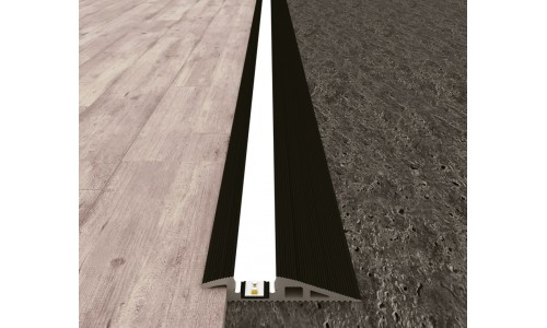 Perfil suelo aluminio anodizado Negro 57,1x10,80mm para tiras LED, barra 2 ó 3 Metros PSP5711N. Ideal para la unión con iluminación en moquetas, suelos tipo parquet y similares. Para instalar tira de LED con un ancho máximo de 10mm.