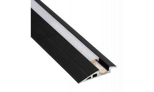 Perfil suelo aluminio anodizado Negro 57,1x10,80mm para tiras LED, barra 2 ó 3 Metros