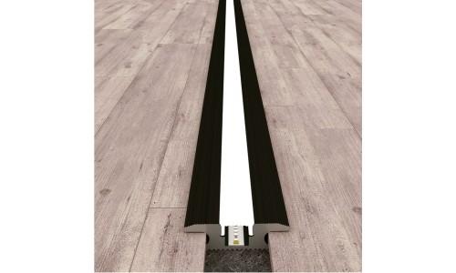 Perfil suelo aluminio anodizado Negro 63,50x12,7mm para tiras LED, barra 2 ó 3 Metros PSP6413N. Ideal para la unión con iluminación en moquetas, suelos tipo parquet y similares. Para instalar tira de LED con un ancho máximo de 10mm.