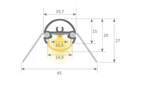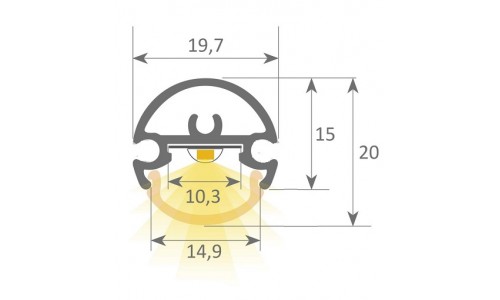 Perfil Redondo de aluminio lacado Blanco de alta calidad, de 19,7mm. PR2015AB. Barra de 2 metros. Perfil Redondo PROFESIONAL circular fabricado en aluminio de alta pureza anodizado en negro y lacado en blanco. El perfil dispone de dos aletas laterales correderas, modificando el ángulo de luz, gracias a su difusor redondeado de metacrilato glaseado. Es ideal para aplicar en techos. Perfil y difusor disponibles en barras de 2 metros. Apto para tiras de led con un ancho máximo de 8mm y una potencia no superior a 21W/m.
