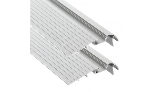 Perfil escalera aluminio anodizado Plata 105,6x28,4mm para tiras LED PP10629P6M, 6 Metros (2 tramos de 3 metros). Para instalar tira de LED. Iluminación de escaleras fabricado en aluminio de alta pureza, anodizado en plata y negro. Con su difusor se obtiene un IP65 a la luminaria fabricada con este perfil muy útil en sitios con una elevada humedad además de ser altamente resistente permitiendo ser pisado por personas sin riesgo a rotura. Frontalmente permite iluminarse con una tira de led debajo del difusor de hasta 14mm de ancho y si se desea asegurar una difuminación perfecta del punto del led puede usarse la iluminación lateral mediante la pletina corredera. También permite iluminar la parte baja del escalón mediante una segunda tira de led.