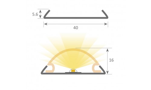 Perfil Aluminio lacado Blanco Superficie 40x5,6mm. para tiras LED,