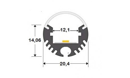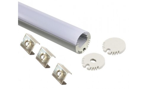 Perfil Aluminio anodizado Redondo 21x17mm. ECO para tiras LED, barra 2 Metros -completo-