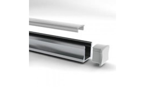 Perfil Aluminio Superficie 17x15mm. para tiras LED, barra de 3 Metros - completo-