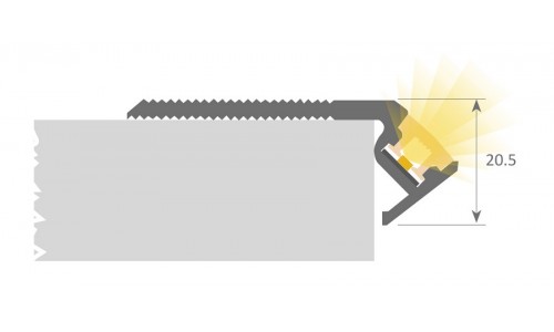 Perfil escalera aluminio anodizado 53,5x20,5mm para tiras LED PP5320A. Barra de 2,40 metros. Para instalar tira de LED. Podemos hacer cortes a medida. También realizamos montajes con tira de led según su necesidad.   Consultenos!!.