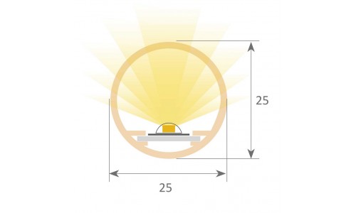 Perfil Redondo Policarbonato 25mm para tiras LED, barra 3 Metros