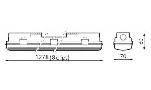 Pantalla estanca PEV136PE1C para instalación de 1 tubo LED de 1200mm sin necesidad de modificar su cableado. Con dos conexiones por un extremo del tubo.