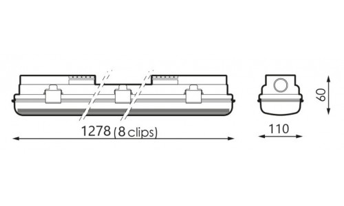 Pantalla estanca Policarbonato ECO para 2 tubos LED de 1200mm, conexión 1 lado