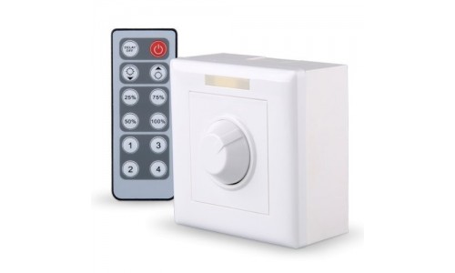 Regulador Tira LED monocolor 96-192W DC12V/24V Superficie con Mando RTL96W. La unidad adopta la más avanzada tecnología de control PWM para control de brillo digital , por control rotatorio o mediante su mando a distancia ultra plano. Se puede colocar en superficie (caja incluida) o empotrado. Su uso permite adecuar el brillo de los leds a cada diferente situación así como ahorrar en el consumo eléctrico de los mismos. Es perfecto para regular tira LED en cualquiera de sus potencias.