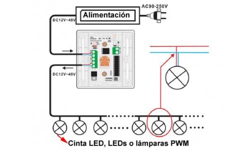 Regulador Tira LED monocolor 96-192W DC12V/24V Superficie con Mando