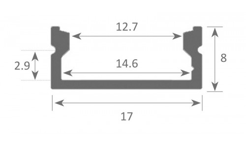 Perfil de aluminio Superficie Blanco 17x8mm. Barra de 2 metros. Podemos hacer cortes a medida. También realizamos montajes con tira de led según su necesidad.   Consultenos!!