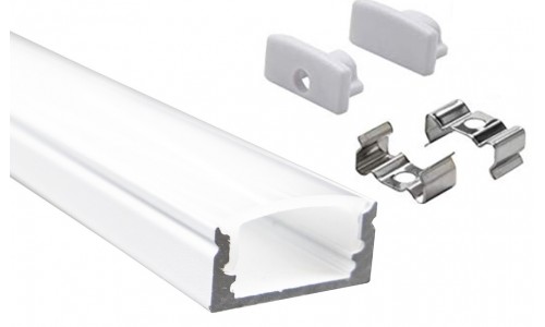 Perfil de aluminio de superficie Blanco ECO de 17x7mm. Barra de 2 metros PS1707EBK2M. El precio incluye: Tira perfil, 1 tapa final, 1 tapa final con salida cable, 2 grapas fijación y difusor.