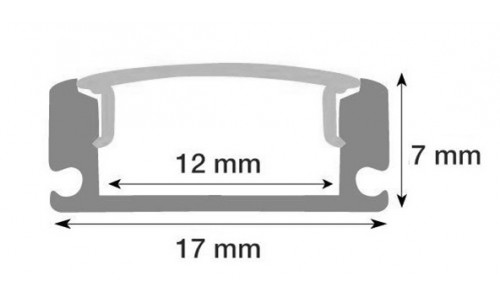 Perfil Aluminio Superficie ECO4 17x7mm. para tiras LED, barra de 2 Metros -completo- Plata, Blanco ó Negro (desde 2,55€/m)