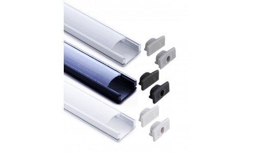 El precio incluye: Tira perfil, 1 tapa final, 1 tapa final con salida cable, 2 grapas fijación y difusor.