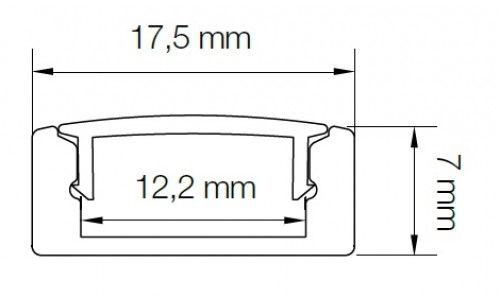 Perfil de aluminio de superficie LINE de 17,5x7mm. Barra de 3 metros PS1707P3M. Podemos hacer cortes a medida. También realizamos montajes con tira de led según su necesidad.   Consúltenos!!