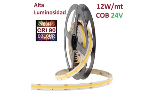 Tira LED 5 mts Flexible 24V 60W COB (320) IP20, Alta Luminosidad IRC>90
