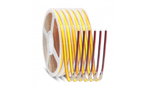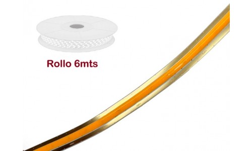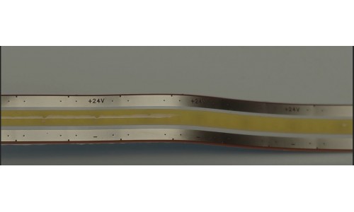 Tira LED Flexible 24V 15W/mt COB IP20, Serie DORE Profesional, rollo 6mts, rollo 6mtsTLF15COBP24D. Tira LED COB flexibles serie Profesional utiliza una solución técnica innovadora para ofrecer una línea de luz uniforme en toda la longitud de la tira. Esto se logra utilizando una línea continua de fósforo amarillo, una tecnología conocida como Chip on Board (COB). Además, este enfoque ofrece un ángulo de visión ultra amplio de 180 grados con una alta calidad de luz. Incorporan en la parte trasera del PCB una lámina de acero que ayuda en la disipación térmica, pero sobre todo que aporta una resistencia a la torsión un 80% mayor que el resto de las tiras COB del mercado.