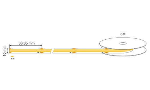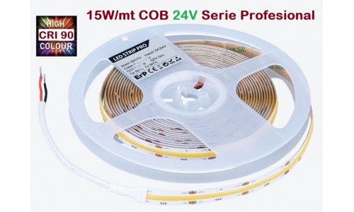 Tira LED Flexible 24V 15W/mt COB IP20 2500ºK, Serie Profesional IRC >90, rollo de 5 mts
