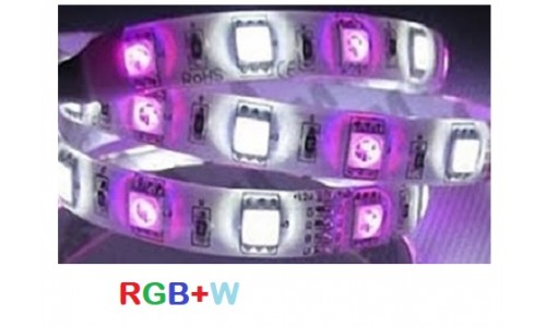 Tira LED RGB+W equipada con una combinación de LEDs RGB y LEDs Blanco Frío que puede iluminar emisión de cualquier color con una alta luminosidad gracias a su chip de color blanco. Son ideales para crear efectos ambientales decorativos.