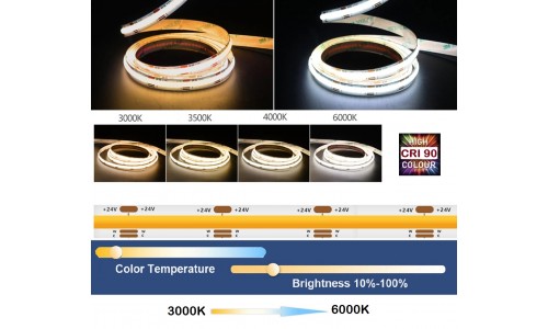Tira LED Flexible 24V 14W/mt COB IP20 CCT 3000ºK a 6000ºK, Serie Profesional IRC >90, rollo de 5 mts