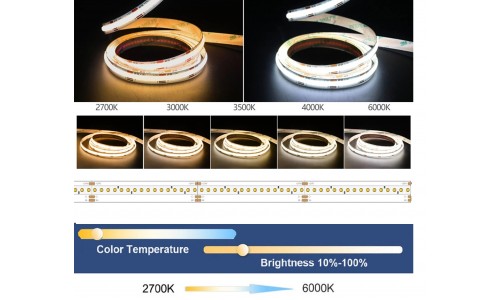 Tira LED Flexible 24V 20W/mt COB IP20 CCT 2700ºK a 6000ºK, Serie Profesional, rollo de 5 mts