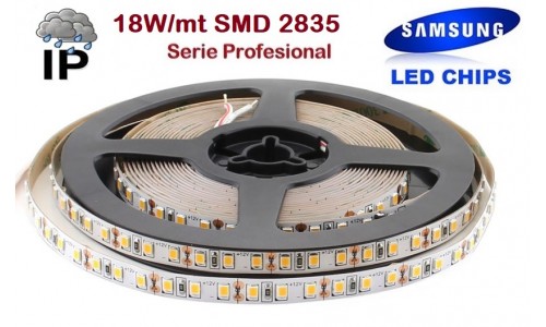Tira LED flexibles serie Professional son de máxima calidad (High Quality) y se presentan con configuraciones de distintas medidas y prestaciones. Este tipo de tira de LED trabaja con fuente de alimentación de 12V en