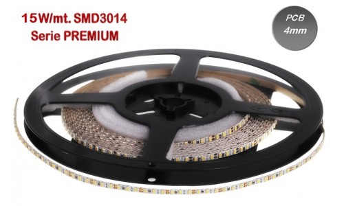 Tira LED 5 mts Flexible 75W 980 Led SMD 3014 IP20 4400ºK, 4mm ancho, Serie PREMIUM TLF75301444PR 15W/mt 198 Led/m. Tira LED flexibles serie Professional son de máxima calidad (High Quality) y se presentan con configuraciones de distintas medidas y prestaciones. Este tipo de tira de LED trabaja con fuente de alimentación de 12V en corriente continua. Su flexibilidad y la dotación de accesorios permiten su aplicación en multitud de diseños de iluminación decorativa de bajo consumo con un gran ahorro de energía. Las tiras de LED es autoadhesiva y presente diferentes grados de protección. A la hora de utilizar esta tira de LED, hay que tener en cuenta su intensidad lumínica, por lo que tendremos que poner un objeto cercano en el que proyecte la luz. Si su fin es como señalización, (delimitar pasillo, resaltar zonas de paso,…) no es necesario buscar un objeto donde proyectar la luz.