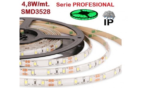 Tira LED 5 mts Flexible 24W 300 Led SMD 3528 IP65 Verde, serie Profesional TLF24VEIP65PRO 4,8W/mt 60 Led/m.