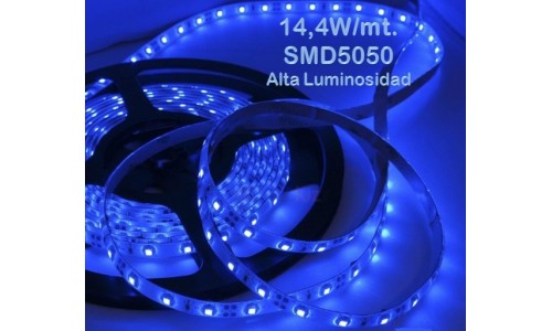 Tira LED 5 mts Flexible 72W 300 Led SMD 5050 IP20 Azul Alta Luminosidad