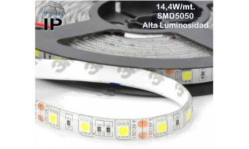 Tira LED 5 mts Flexible 72W 300 Led SMD 5050 IP54 Blanco Neutro Alta Luminosidad TLF72NWIP65P 14,4W/mt 60 Led/m.