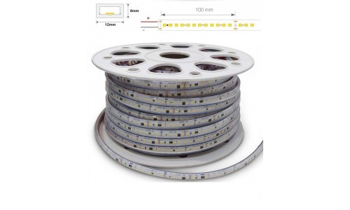 Tira LED 230V monocolor 19W/mt 120L/mt. SMD 2835 IP67 12x6mm corte cada 100mm, Bobina 50mts. TLD283519B50.