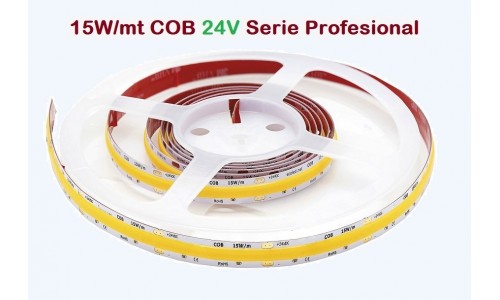 Tira LED Flexible 24V 15W/mt COB IP20 Blanco Cálido, Serie Profesional, venta por metros
