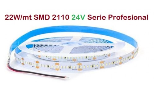 Tira LED 5 mts Flexible 24V 110W 1400 Led SMD 2110 IP20 Blanco Frío, Serie Profesional TLF1102110CWP24 22W/mt 280 Led/m.