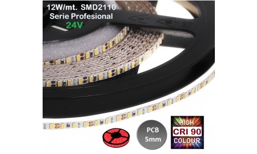 Tira LED 5 mts Flexible 24V 60W Estercha (4mm) 1330 Led SMD 2110 IP20 Rojo, Serie Profesional IRC >90 TLF602110ROP24CRI90 12W/mt 266 Led/m. Tira LED flexibles serie Profesional son de máxima calidad (High Quality), PCB de doble capa. Este tipo de tira de LED trabaja con fuente de alimentación de 24V en