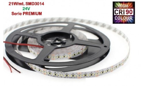 Tira LED 5 mts Flexible 24V 105W 1190 Led SMD 3014 IP20 Blanco Cálido, Serie PREMIUM IRC >90