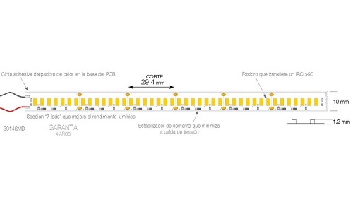incluida. Este tipo de tira de LED trabaja con fuente de alimentación de 24V en